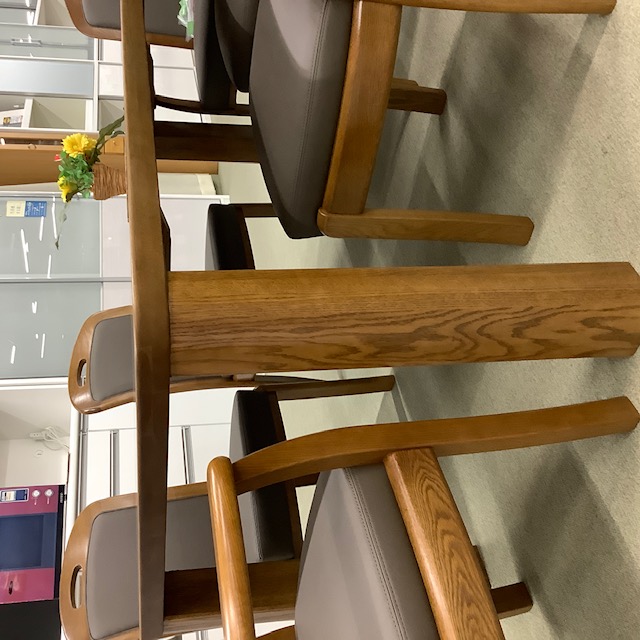 店頭にございますのは椅子4脚、肘掛椅子が2脚、テーブルの6人用セットで販売しています。