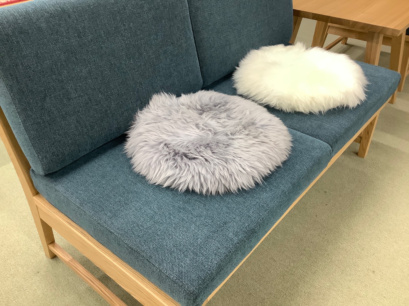 ひつじの毛100%のクッションです