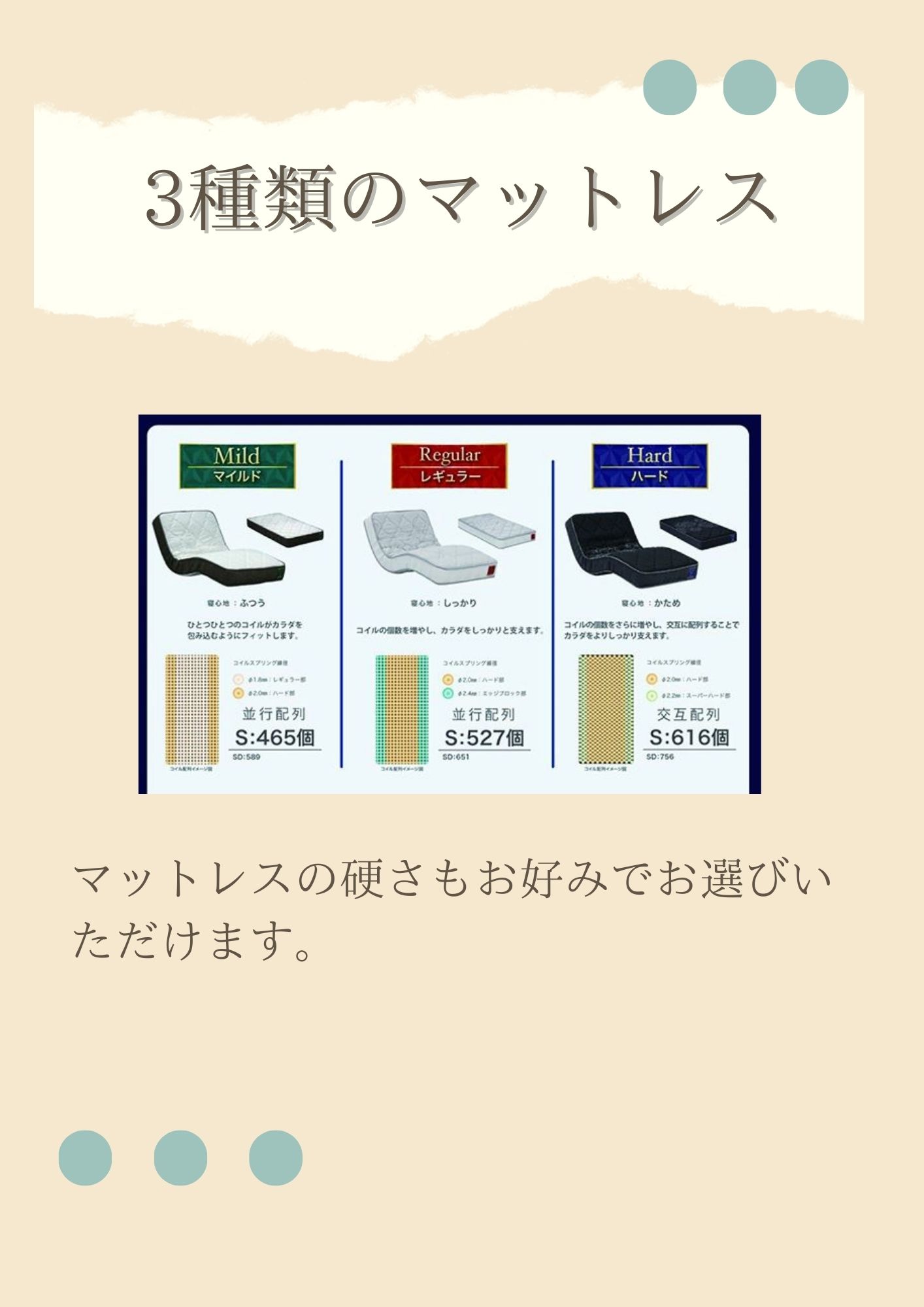 マットレスもお好みの硬さをお選びいただけます。