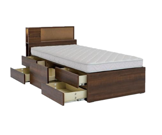 ベッドの下には5つもの引出がついてしっかり服を収納することができます。