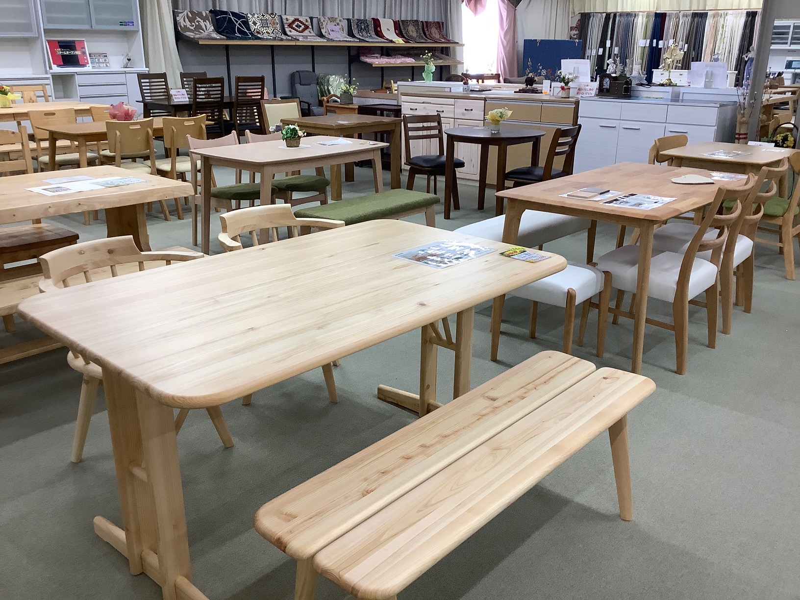共伸家具では広い店内でゆったりと実際に商品を見ることができますので、