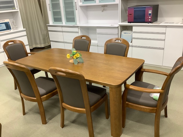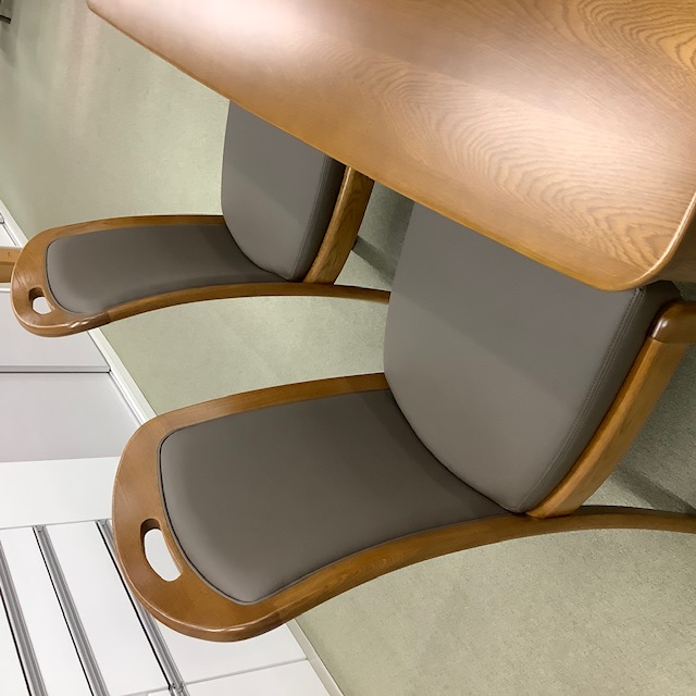 肘掛椅子が2脚と肘掛無しの椅子が4脚がセットになったダイニングテーブルセットです
