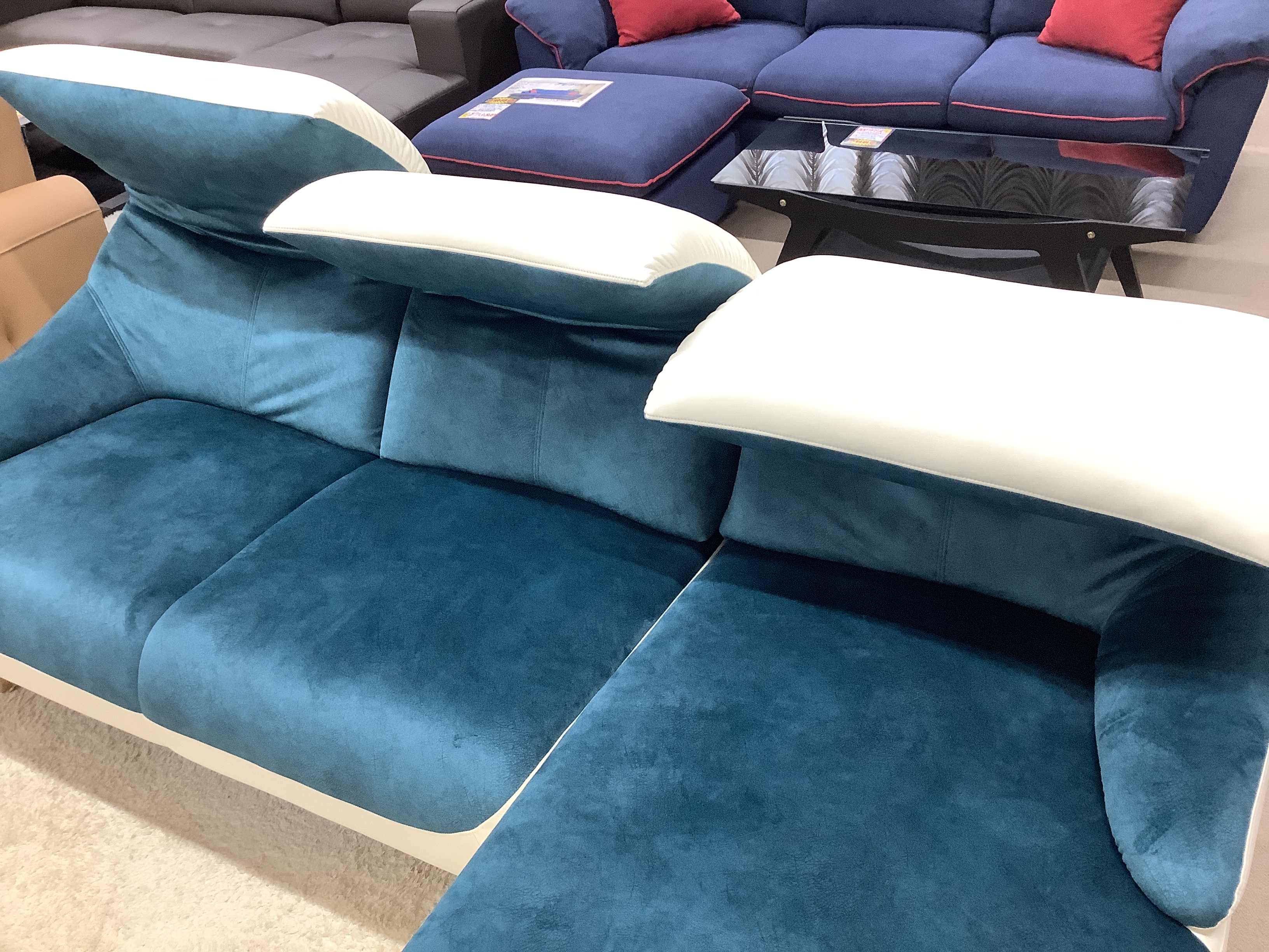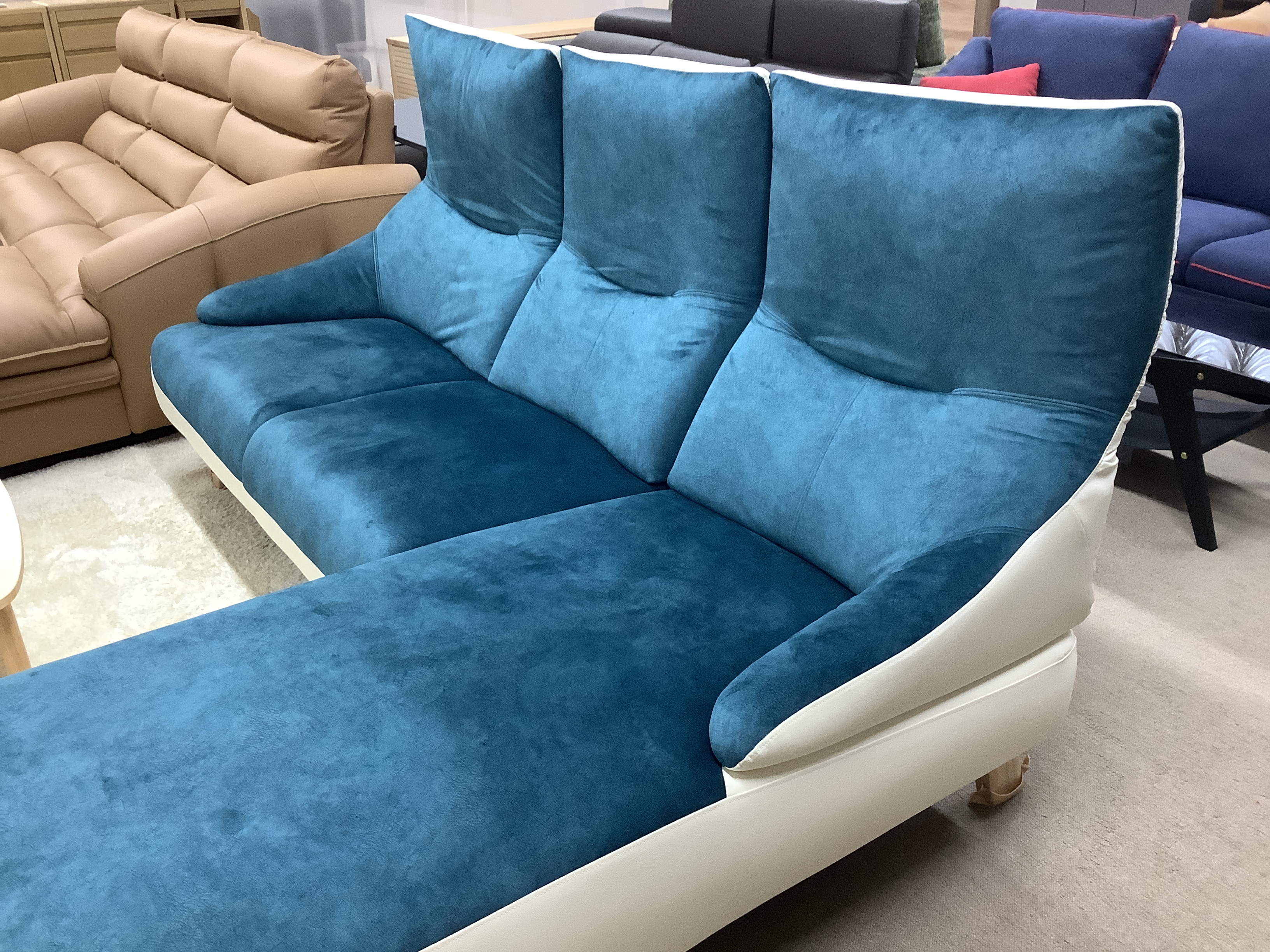 背もたれが1シートずつ折れ曲がるリクライニングソファーです。