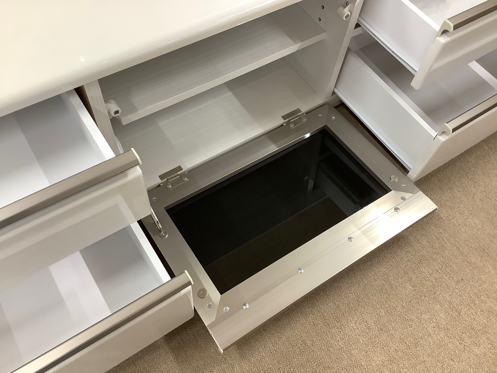 材質はMDF、ハイグロスシートでつやのある仕上がりです。