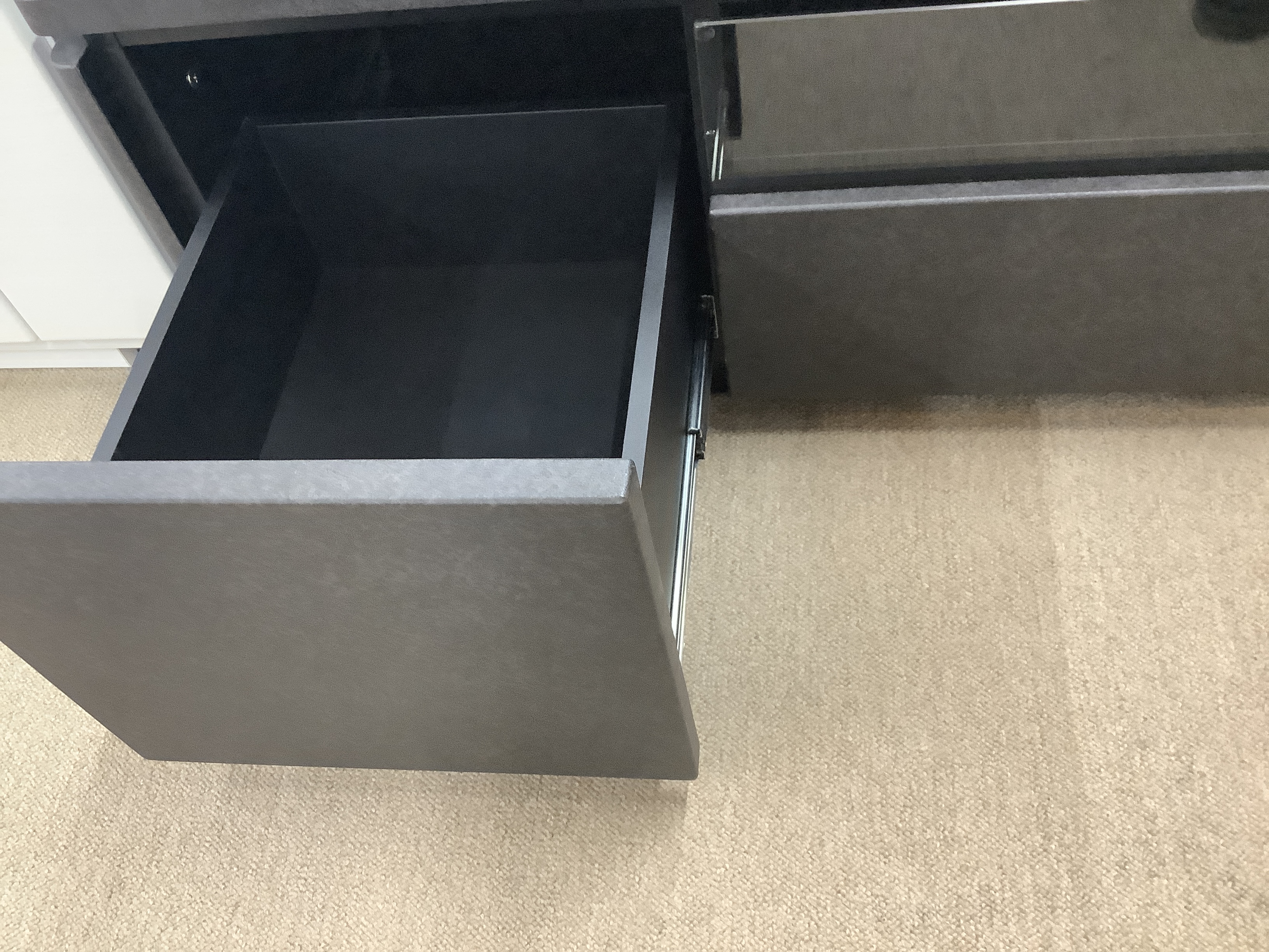 真ん中の引き出しは上部がガラスでできてオシャレなデザイン。