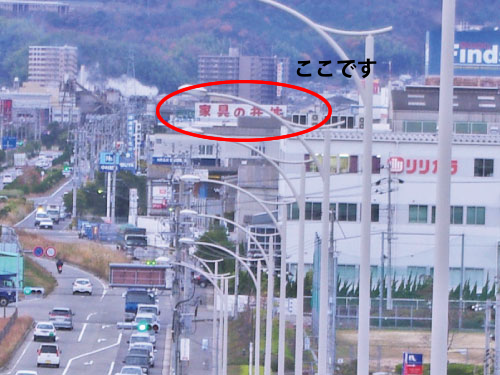 観音方面から廿日市大橋を下っていただきますと看板が見えてまいります。