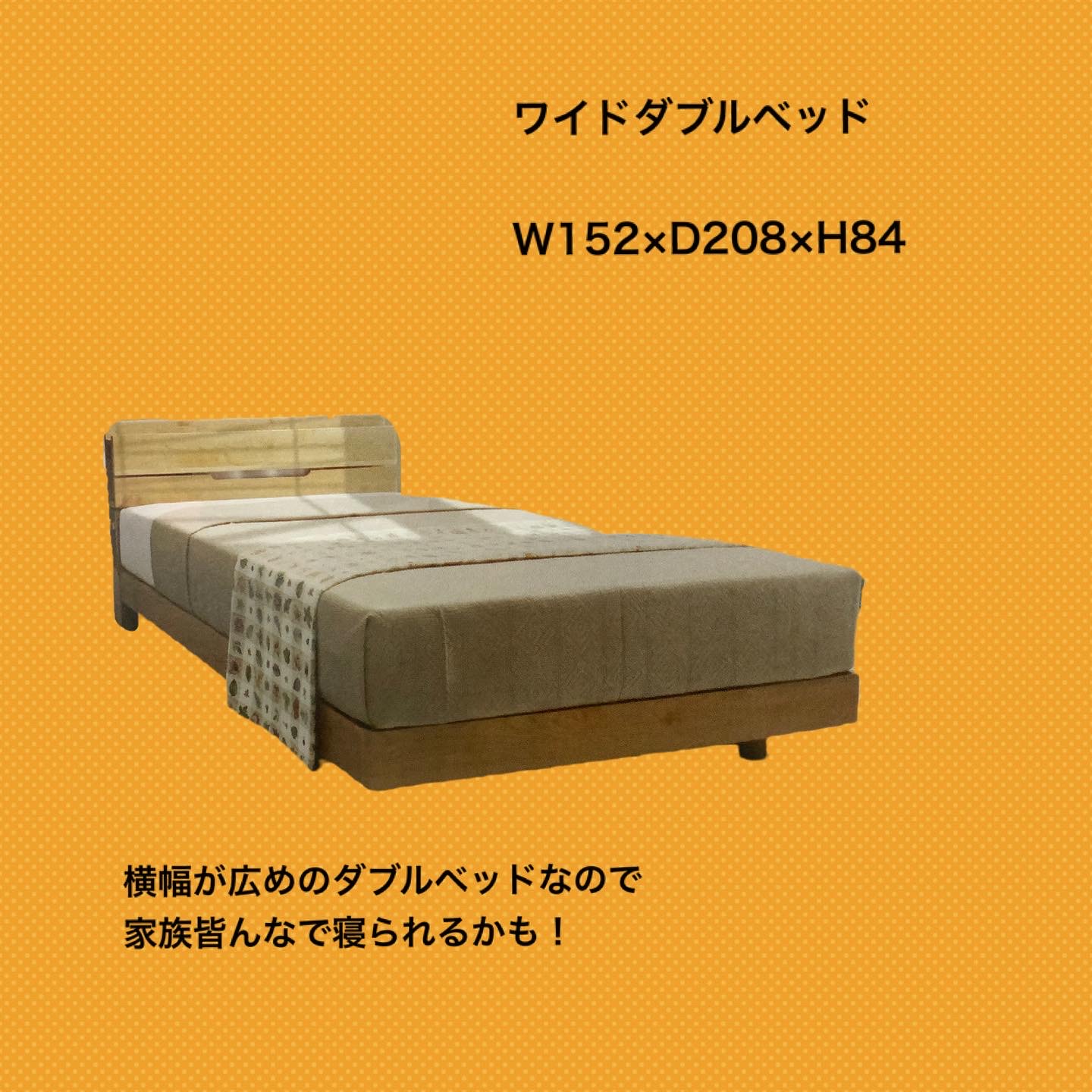 こちらのベッドはワイドダブルベッド。