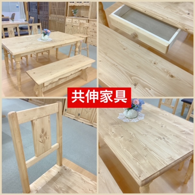 使い込むほどに風合いが楽しめる、北欧パイン材を贅沢に使用したダイニングテーブルセットのご紹介です✨