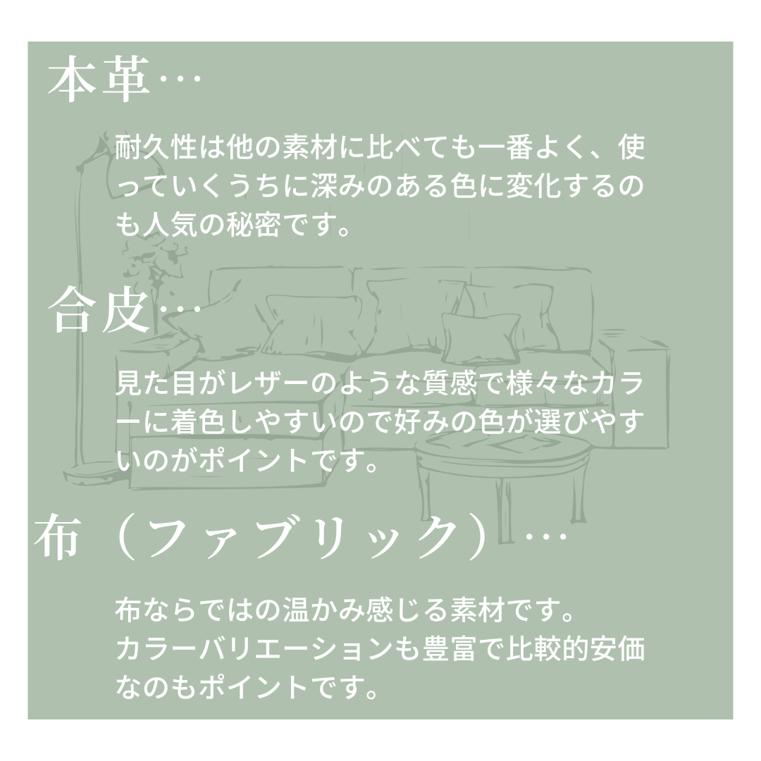 ソファー選びのポイントは5つです。