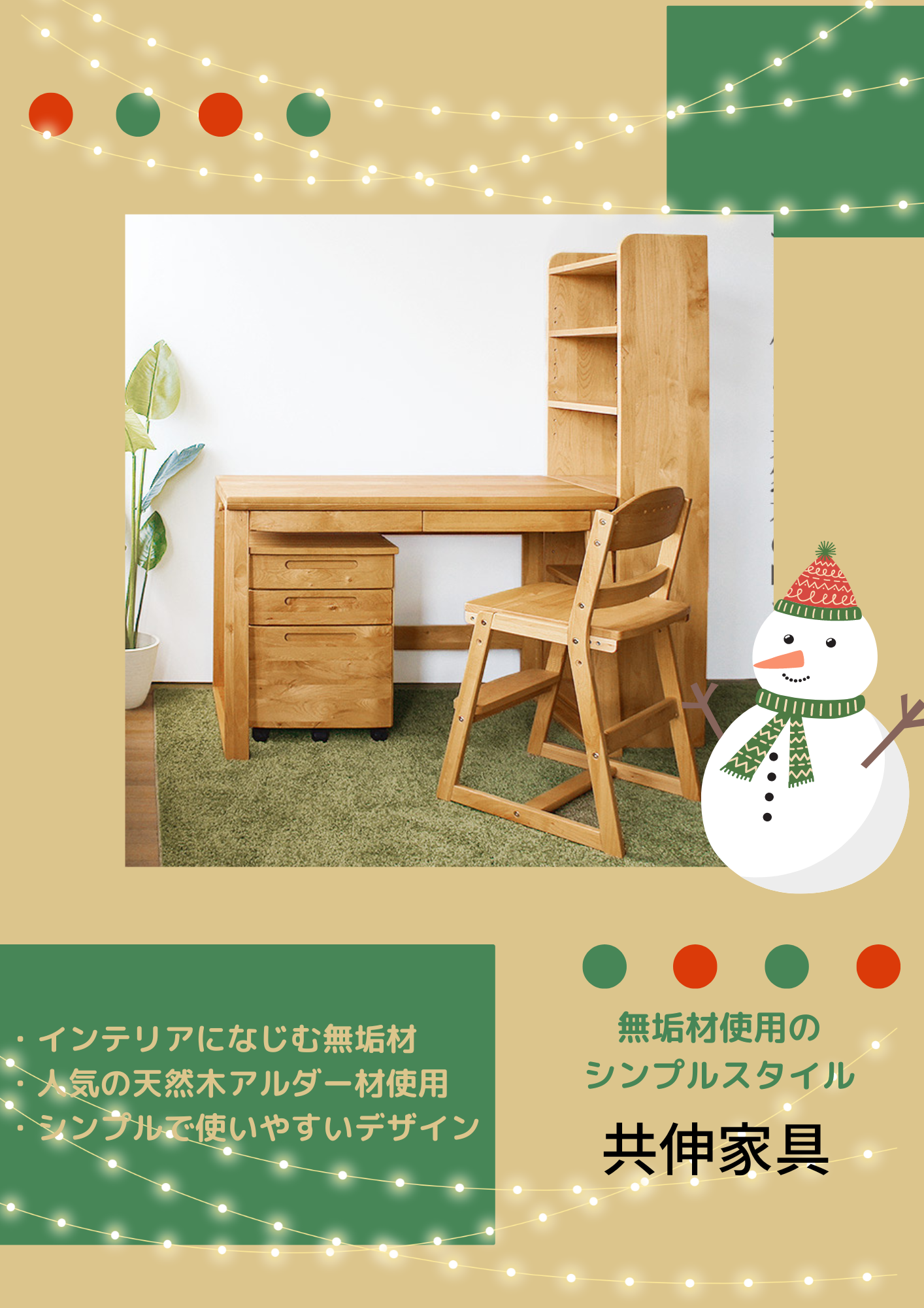 定番の学習机から人気の無垢材使用のデスクまで、共伸家具であは様々な学習机を取り揃えております。