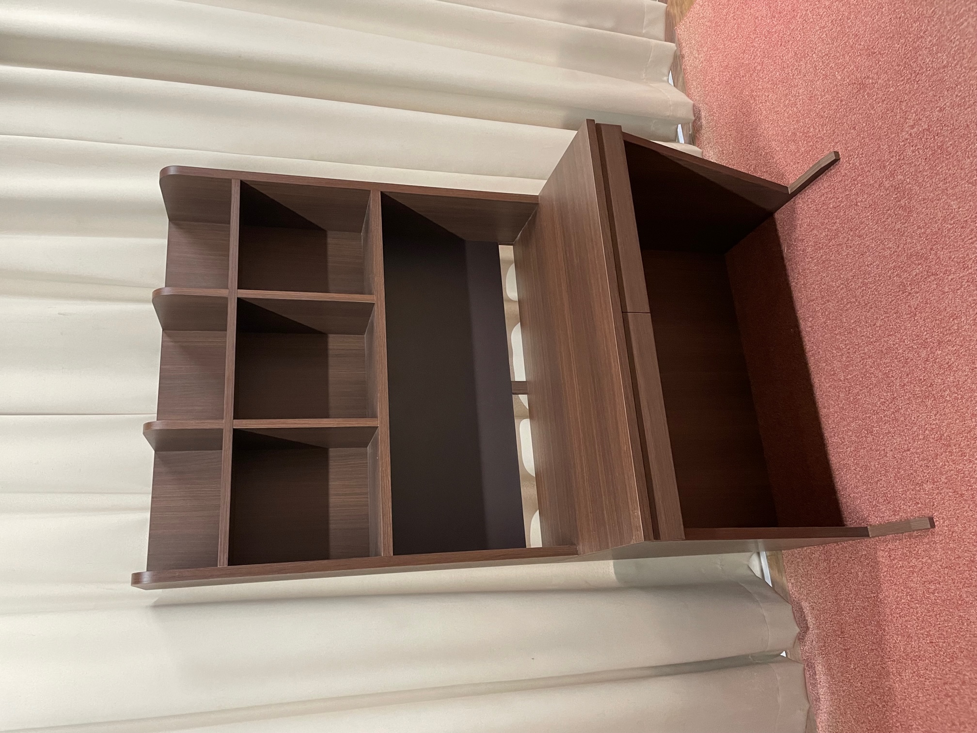 コーナー型で収納棚・袖箱付きのデスクです。