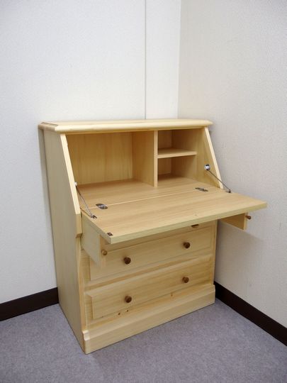 久々にライティングビューローを復活しました 材質はヒノキ材、天板は傷がつきにくいメラミン仕様 サイズはW810×D440×H990(机の高さ660)