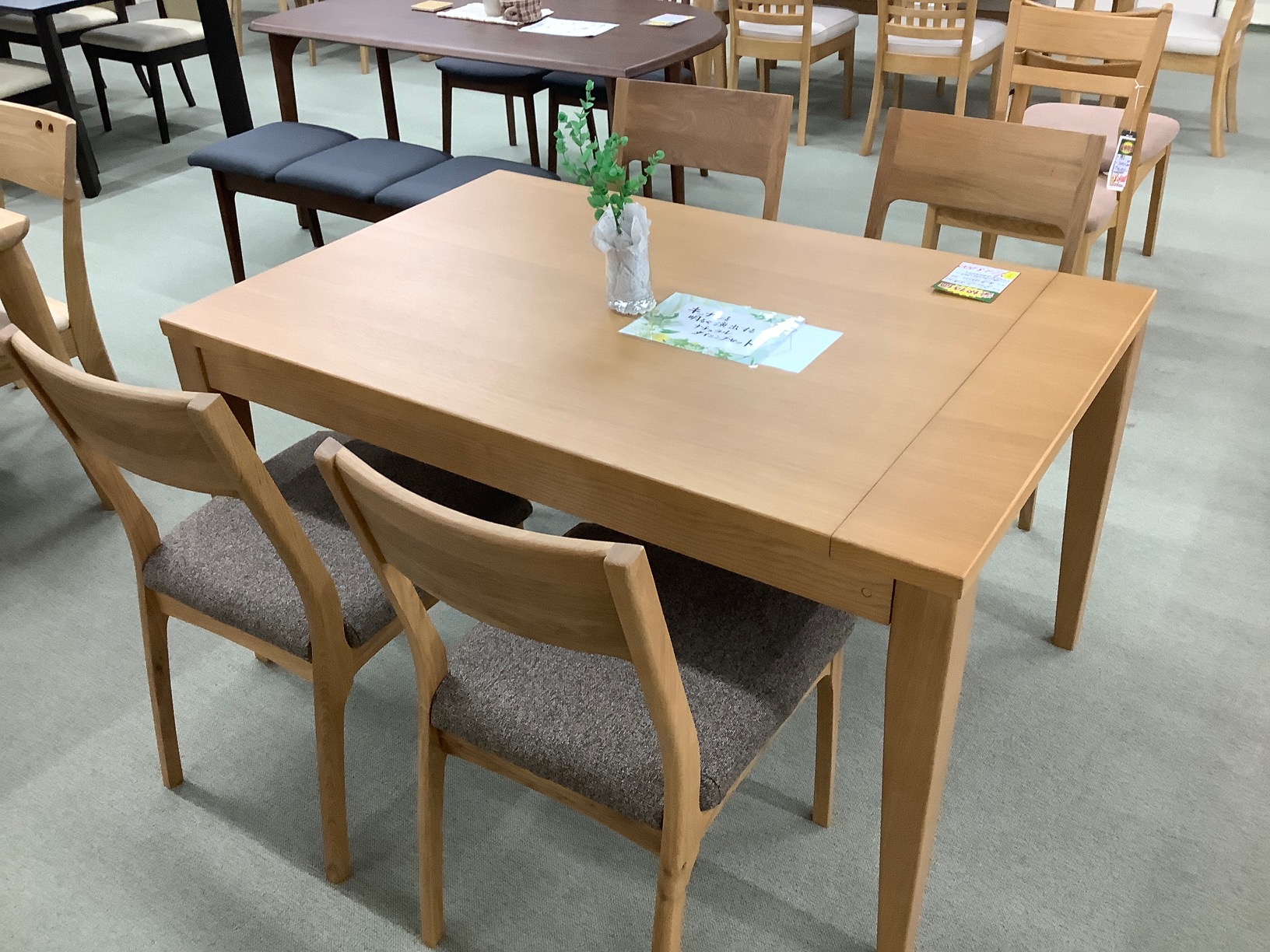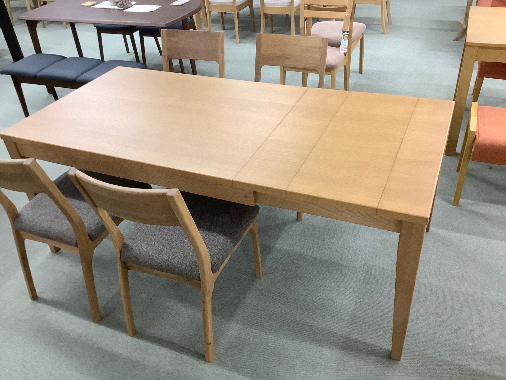 伸長式のテーブルがポイントのダイニングセットです。