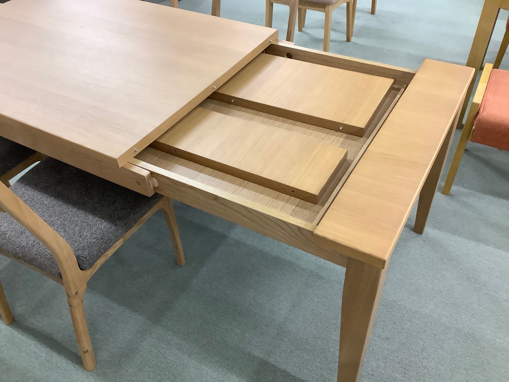テーブルは引き出して中に天板が収納してあります。